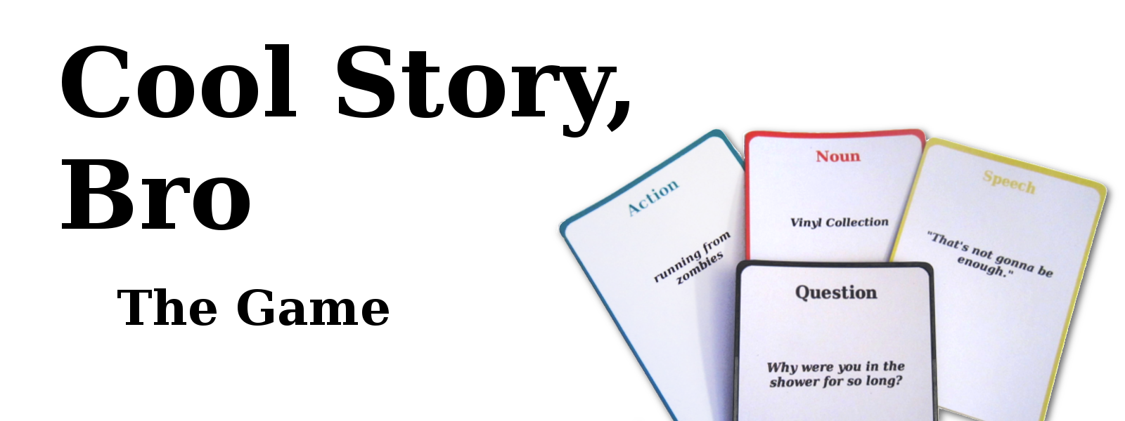 In each round, a player is assigned as 'The Bro', and draws a black card with a rather ambiguous question on it. The other players then each draw four white cards, and use the details on those cards to create an improvised story explaining their answer to the question. Channel your inner improvisation skills to tell a story for the ages. But how does a zombie chase, a vegan, and shouting "Tacos!" explain why you were in the shower for so long? You tell me!