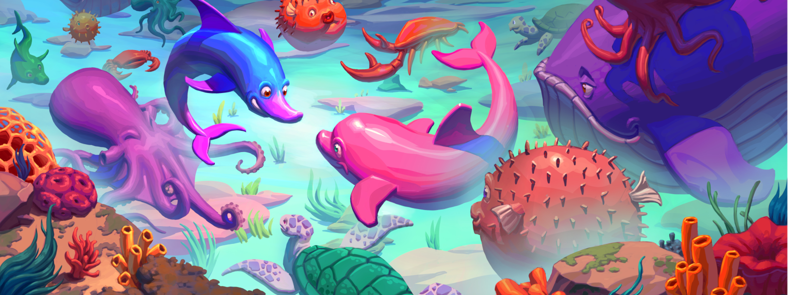 Dive into Coral Clash, a chess-like strategy game where you command an aquatic army of dolphins, turtles, and more, to outmaneuver your opponent in a war to create and own the coral reef. Victory is achieved through clever strategy: either checkmate your opponent's whale or dominate the board with coral control.