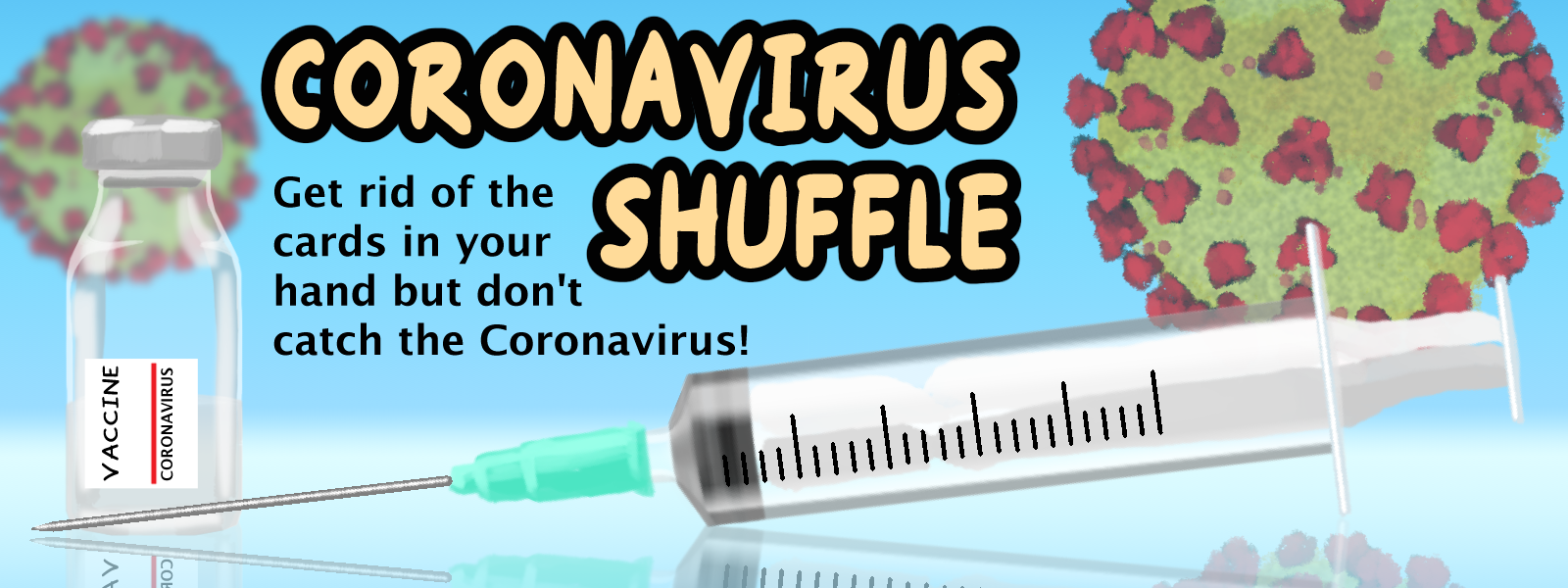 Coronavirus Shuffle: Two players begin the game carrying a Coronavirus. Everybody else has ways to prevent the spread of the virus; Socially Distance, Personal Protective Equipment, Good Hygiene... and there are even some wild card Vacccines! The goal is to be the first to empty your hand each wave and ultimately be the player with the lowest score by the end of the game. Play several waves, total your scores at the end, the player with the least points wins.