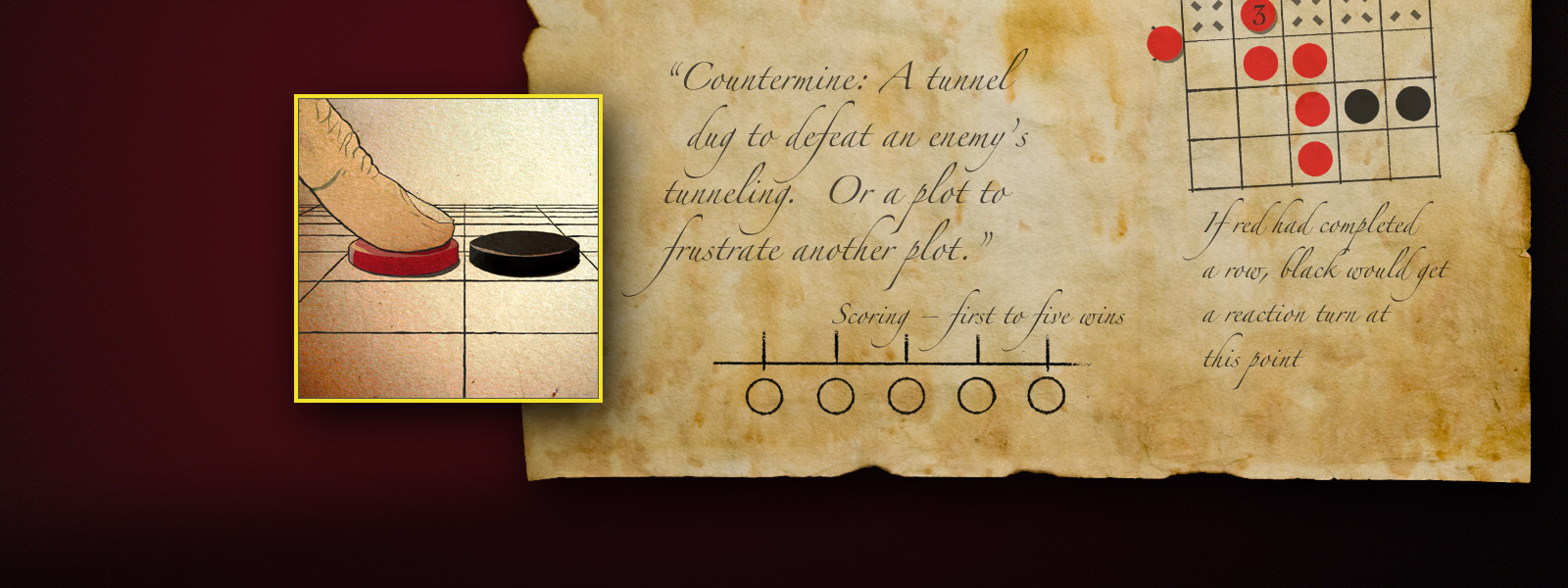 This is a pure strategy game for two players. The board is a uniform grid and the players have equal pieces. The variety and replay value come from the many levels of threat and bluff in how you place your pieces.
