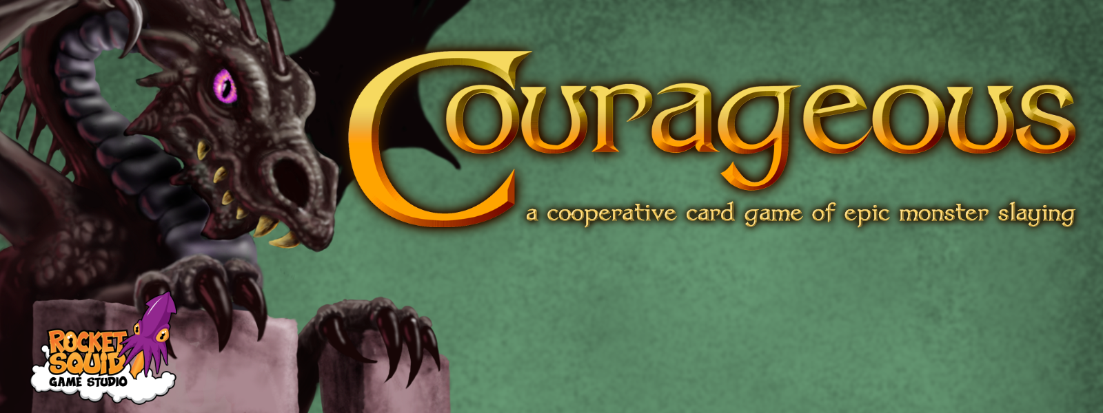 Courageous is a co-operative card game, where you and your fellow players are an alliance of Heroes who must protect the Realm from Monsters that roam the lands. You must vanquish four monsters to be victorious. However, if your Courage runs out, you face defeat and the utter ruin of all!