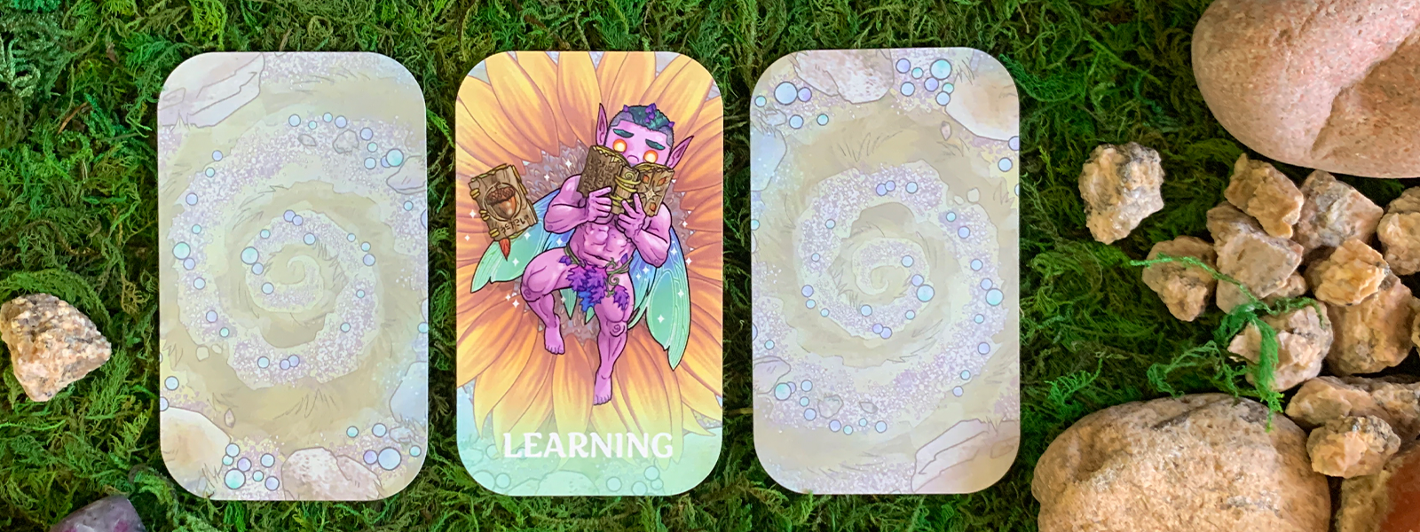 Hidden behind a veil lies a realm of enchantment and wonder, inhabited by mythical fairies. These beings of pure magic are watched over and protected by their Fairy King. Each plays a crucial role in his court as royal advisors, specializing in their own separate spheres of influence. The Fairy of Inspiration, The Fairy of Love, The Fairy of Bravery, and all the other fae found in this oracle offer messages of fate and fortune, of power and courage, of desire and romance. The Fairy King has gifted you the council of not only himself, but his entire court. What messages will they have in store for you, explorer?