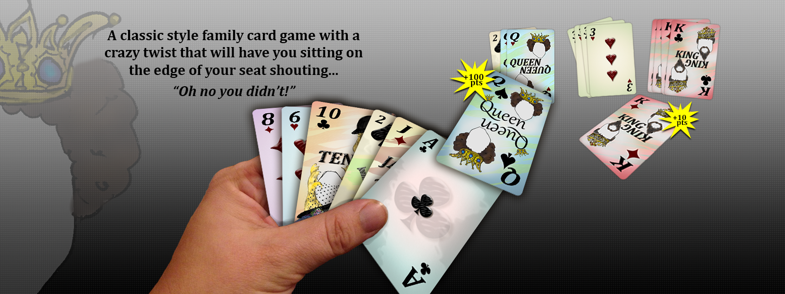 The Queen of Spades is worth 10 times what the other queens are worth, and with only three available to collect it's a crazy fight to the finish. Play every person for themselves, or divide into two even teams.
