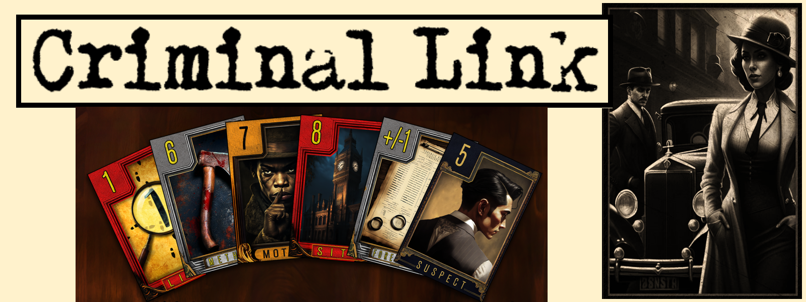 Criminal Link is a noir detective themed rummy-type card game.