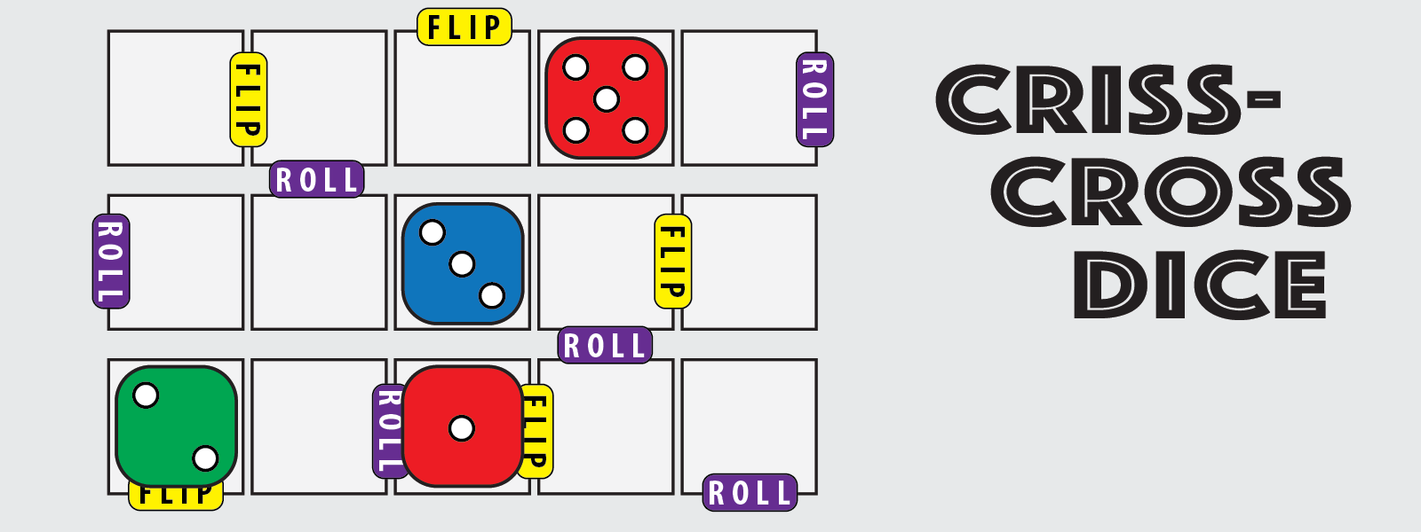 Criss-Cross Dice is a 2-player strategic game where you push, flip, and roll your dice in order to score the most points along the criss-crossed rows, columns, and diagonals of the grid.