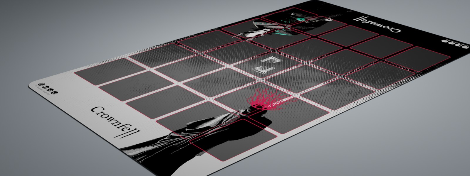This beautiful 24x14" neoprene playmat is designed for use with Crownfell, by We Heart Games.