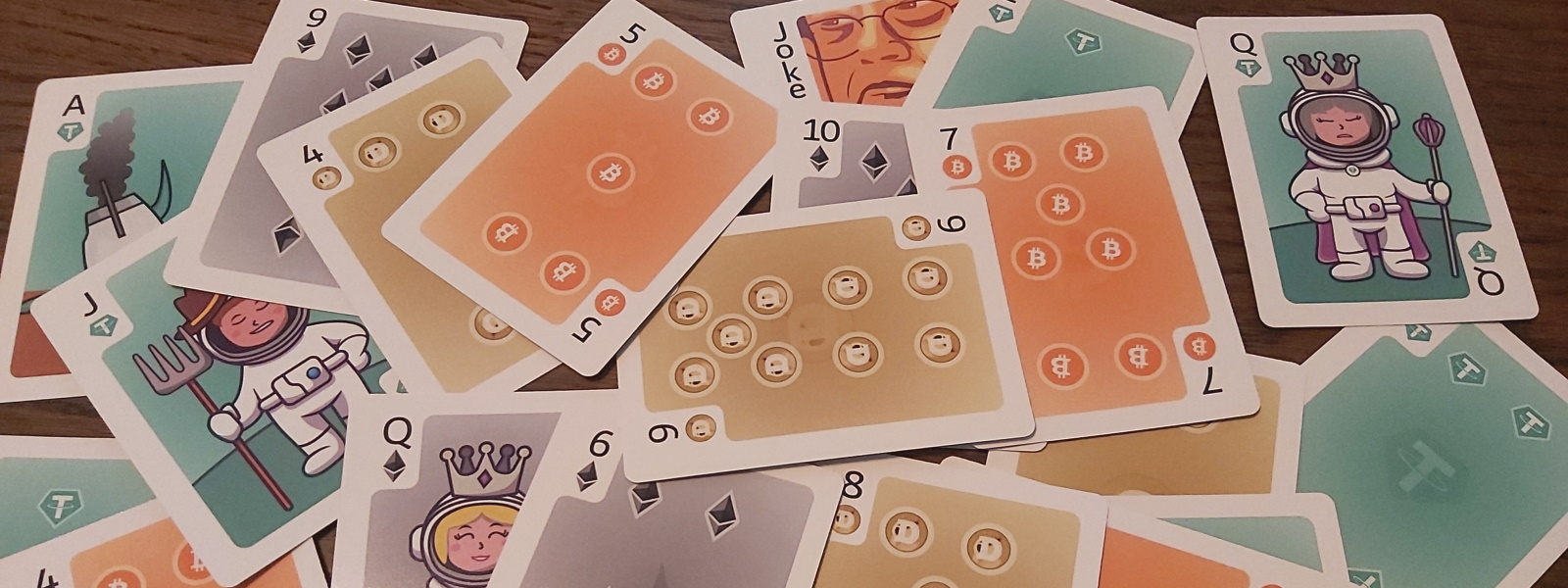 Each currency has 14 cards with a subtly different Jack, Queen, King and Joker to express the sentiment/meme-factor of the currency.