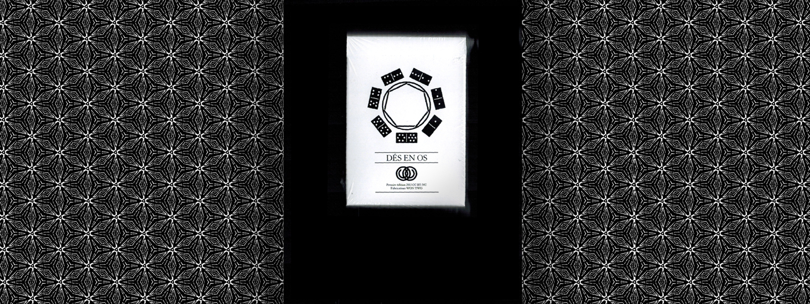 This deck is a 7 colour variation of dominoes. The numbers go up to seven and fit the 'flower of life' formation. There are boarders on each end of the cards denoting the value of the card by pattern and number. The patterns fit together in such a way to make sums of 7 just as with opposite sides of cube dice. Ordinary domino and dice games may be played with this deck. Its characteristics illustrate latent aspects of dominoes and dice and alternate ways of handling and stacking the cards. There are no instructions necessary although there are illustration and instructions for original games and puzzles online and as pdf. This is intended to be an open ended game system to creatively engage its users.