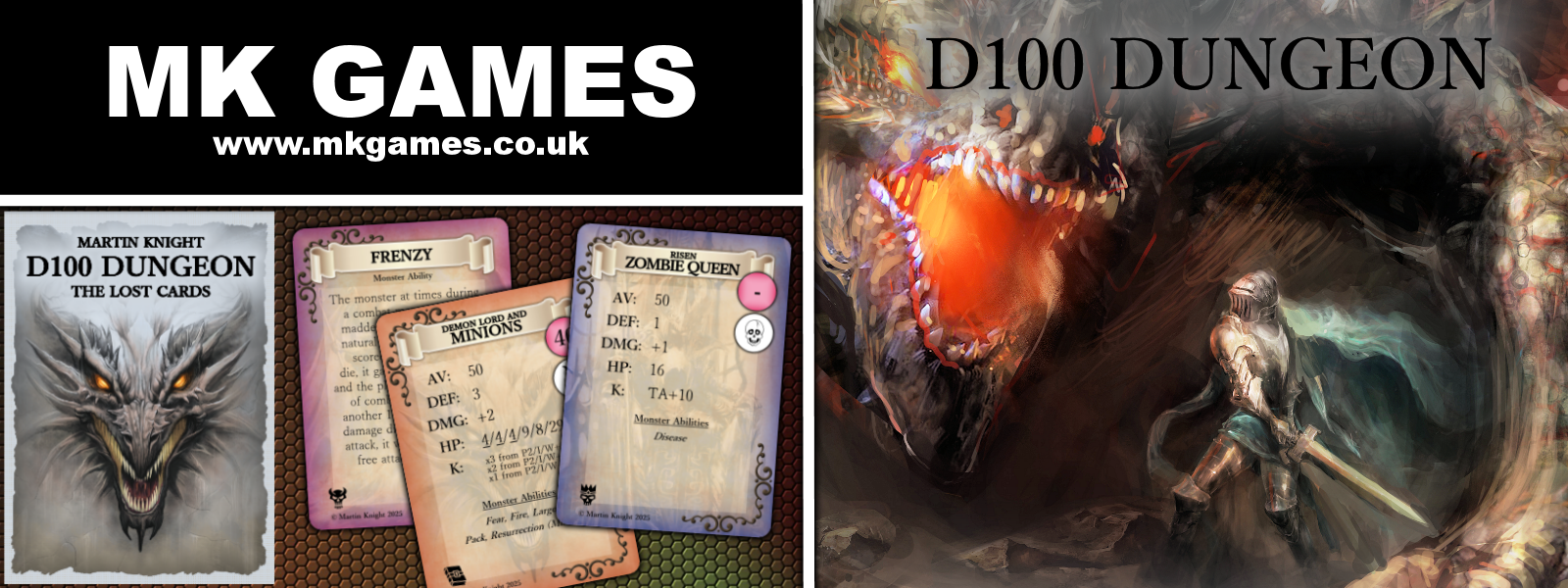 The set contains monsters and monster abilities from the following D100 Dungeon expansions: The Adventurer’s Companion, The Dragon Armour, The Lost Tome Of Extraordinary rules, The Dragons Return, and The Rune Forge.