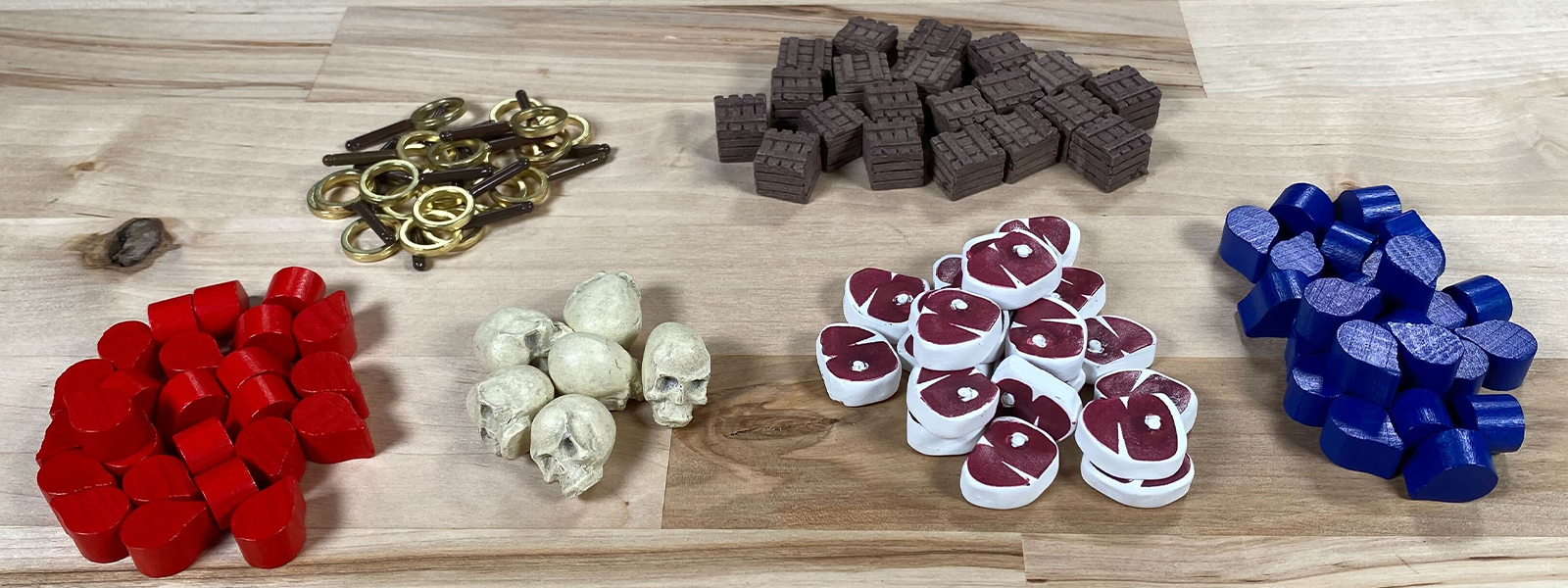 This kit replaces the cardboard resources with premium wood and composite materials. These can help enhance the emersion and theme while playing Dead of Winter.