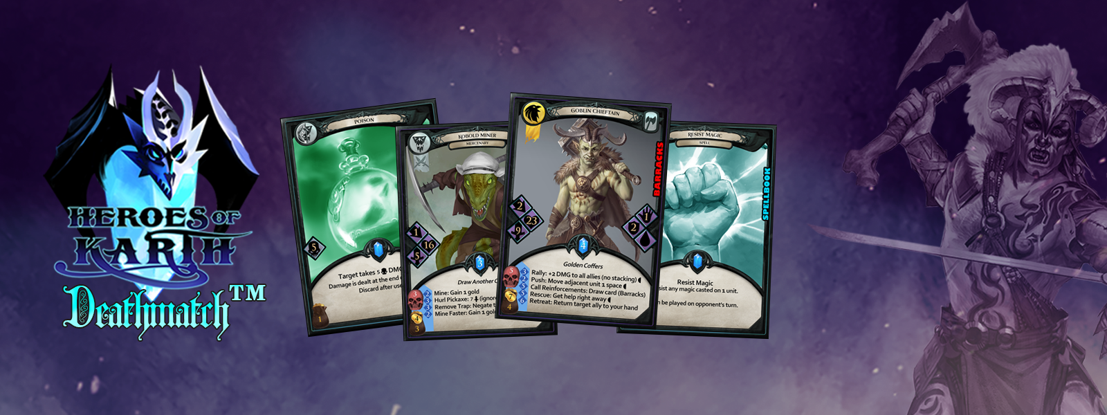 Heroes of Karth: Deathmatch™ is a fantasy deck-building card game based on the Heroes of Karth™ book series. Deathmatch can be played with 1-4 players in 5 different game modes: