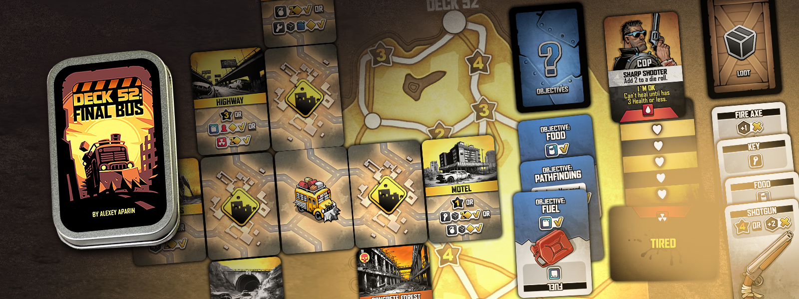 DECK 52: Final Bus is a fast-paced solo card game set in a radioactive wasteland. Strategize to survive enemies, obstacles, and dwindling resources as you fight to reach a safe haven. Play standalone missions or link multiple missions together for a deeper adventure, where choices and outcomes from one mission carry over to the next. Progressively harder challenges keep the journey tense and engaging.