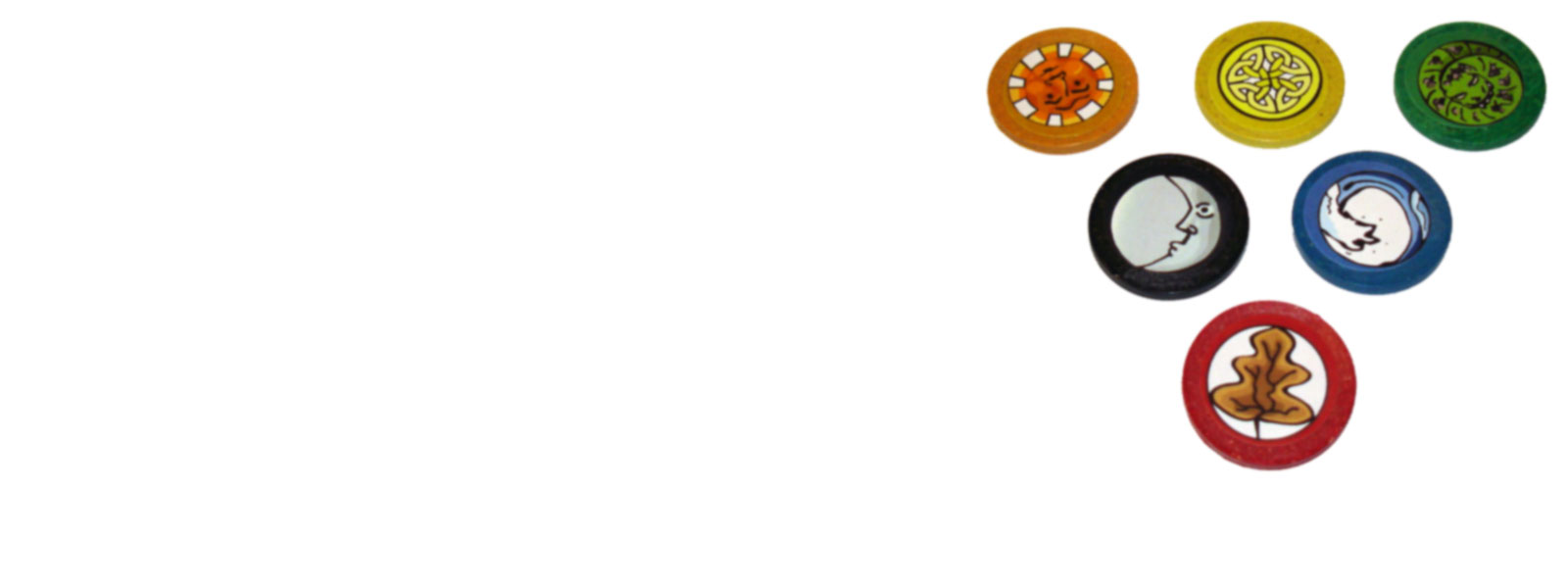 Seventy-two plastic chips in six different colours, corresponding to the six Decktet suits. They can be used as resource tokens in the game Magnate, as loot tokens in Second Story, or in other ways not yet imagined.