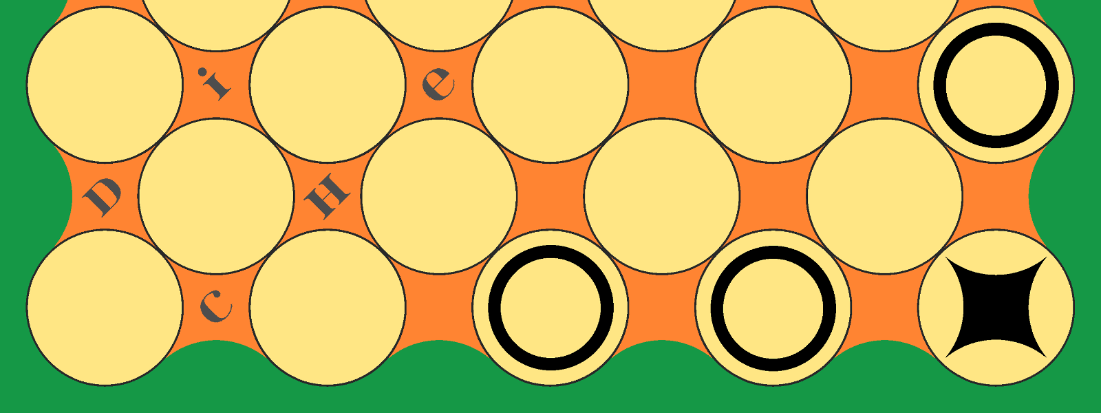 On the reverse side of the board is Ringo, a classic game from 1915 of unequal forces played on an unusual round board. Think you can take on an opponent with more pieces than you? Here's your chance to prove it!