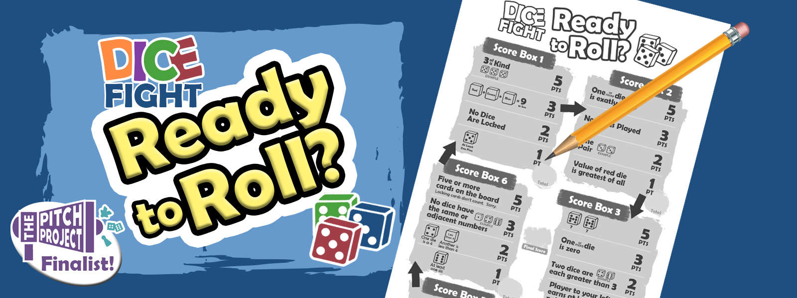 Dice Fight - Ready to Roll? features simultaneous engagement and "Take That" action cards to keep the fun rolling along. You can learn the game in five minutes and be finished about 15 minutes later. When you finish, you'll likely want to grab a new score sheet and take on your friends again and again. So get Ready to Roll and bring some fun and energy to your game table!