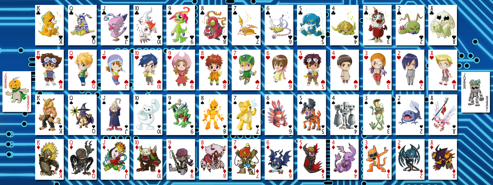 This has been a collaborative project between 4 different artists. Below is a character list for each card and artists credited for each suite.