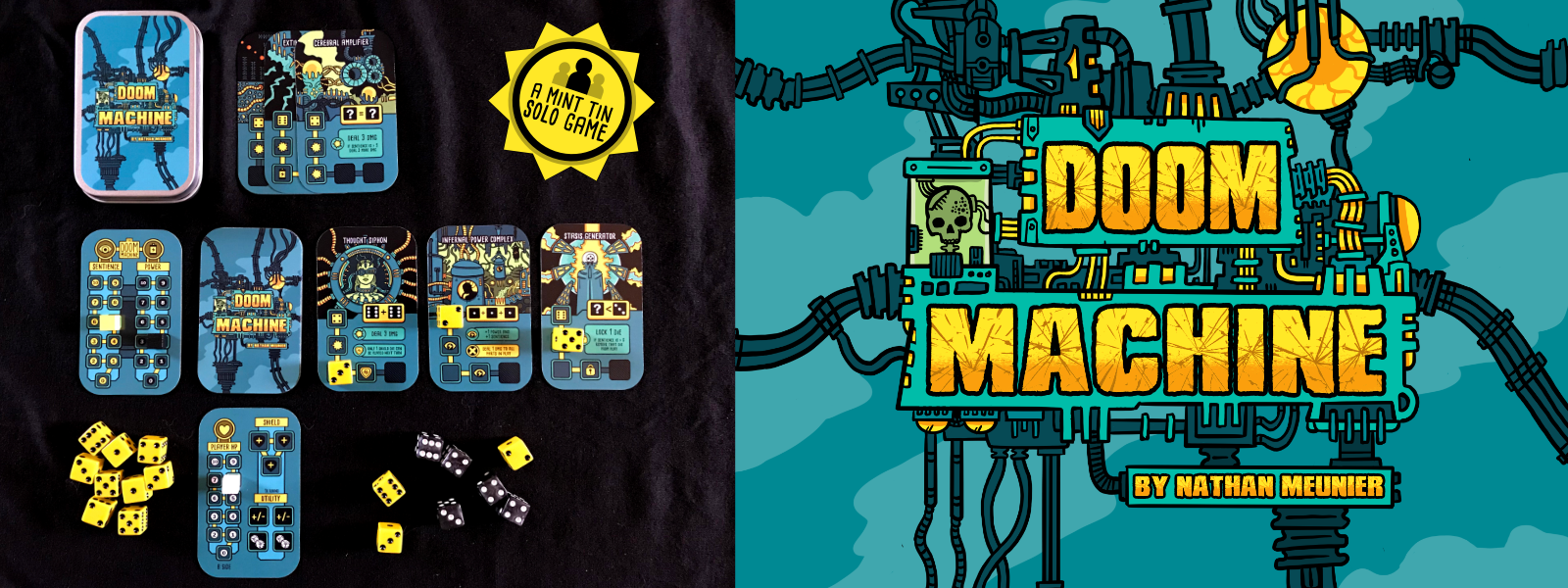DOOM MACHINE is an intense pressure-cooker card and dice solo game experience that fits in your pocket. Face off against an ever-evolving, ever-growing machine of death and destruction! Find and defeat the doom core before humanity is annihilated.