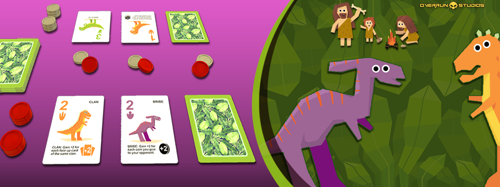 Dueling Dinos is a card game in which the object is to outsmart your opponent and gather rewards. Each player drafts a pack of dinosaurs (dinos), wagers precious stones (tokens), and then watches as their dinos take on their opponents dinos in head to head duels.