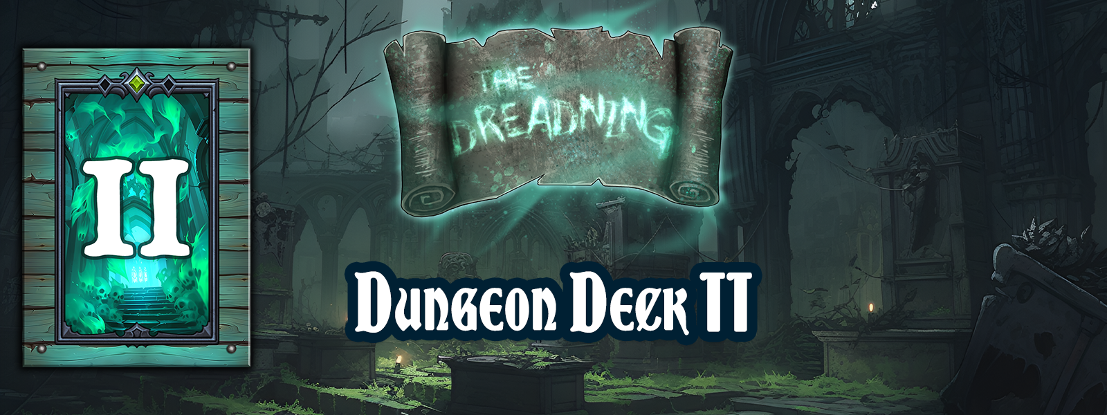 This 54-card expansion contained new enhancements, upgrades, support monsters, dungeon upgrades, mini-bosses, and full-sized bosses. Also included are new monster skills and our first block of monster spells. With these, you can arm your minions to give them a fighting chance. Use this deck on its own, or combine it with Dungeon Deck I and deck-build your way to the perfect dungeon, and give those heroes a good thrashing!
