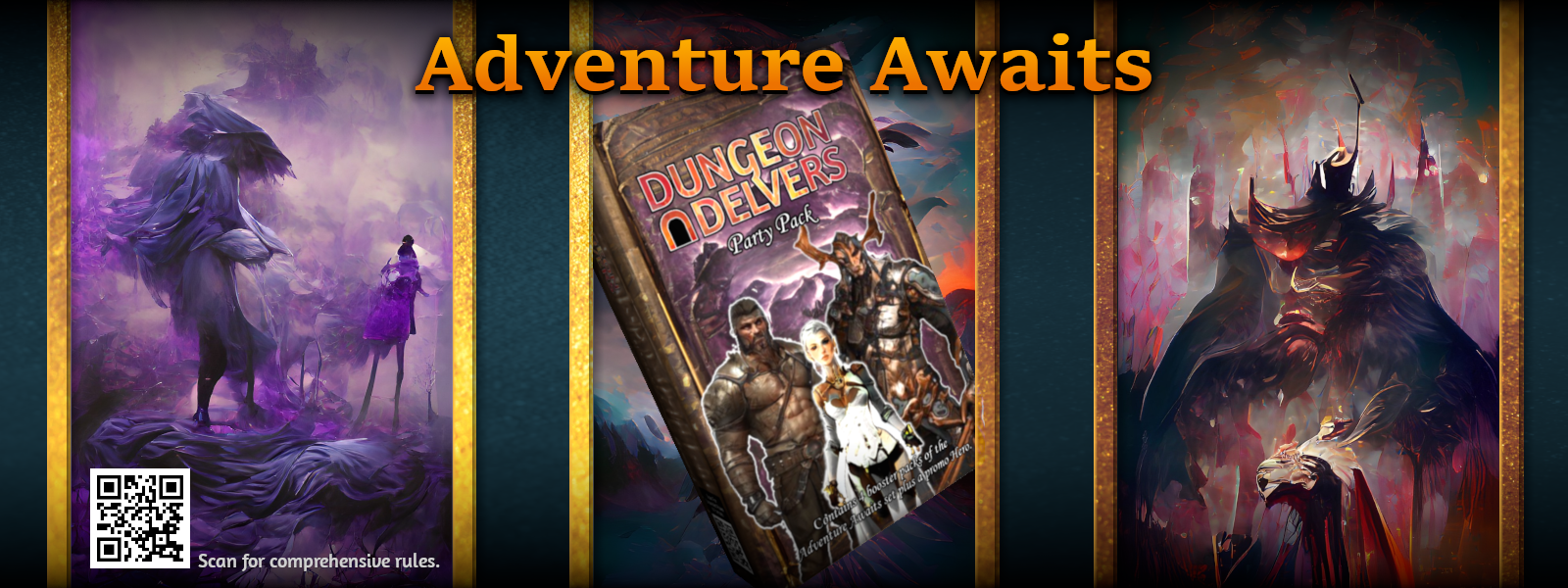 Dungeon Delvers is a collectible card game where players can adventure a dungeon as a lone hero or party up with friends. Each booster pack is a contained game experience for a single player while additional booster packs can be used to expand the number of players. If you've already built up a collection of cards you can strategize and combine them to form decks, use them to complete against other players in a galditorial like challenge or work together to defeat your own custom dungeons.