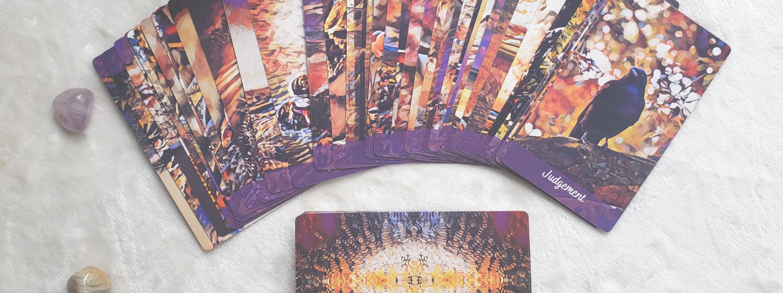 The Earthly Aura Tarot deck captures the beauty of the world and all life that inhabits it. The suits of this deck, also known as the Minor Arcana, are represented by different geographical ecosystems based on the suit's ruling element. Wands, ruler of fire, represent the desert. The suit of Cups, the ruler of water, represents the oceans. Swords, the ruler of the air, represent the jungle. Pentacles, the ruler of the earth, represents the North American forests. The Major Arcana highlights these ecosystems in their entirety and brings to life the representation of the cards. I wanted the essence of all earthly energy featured throughout this deck.