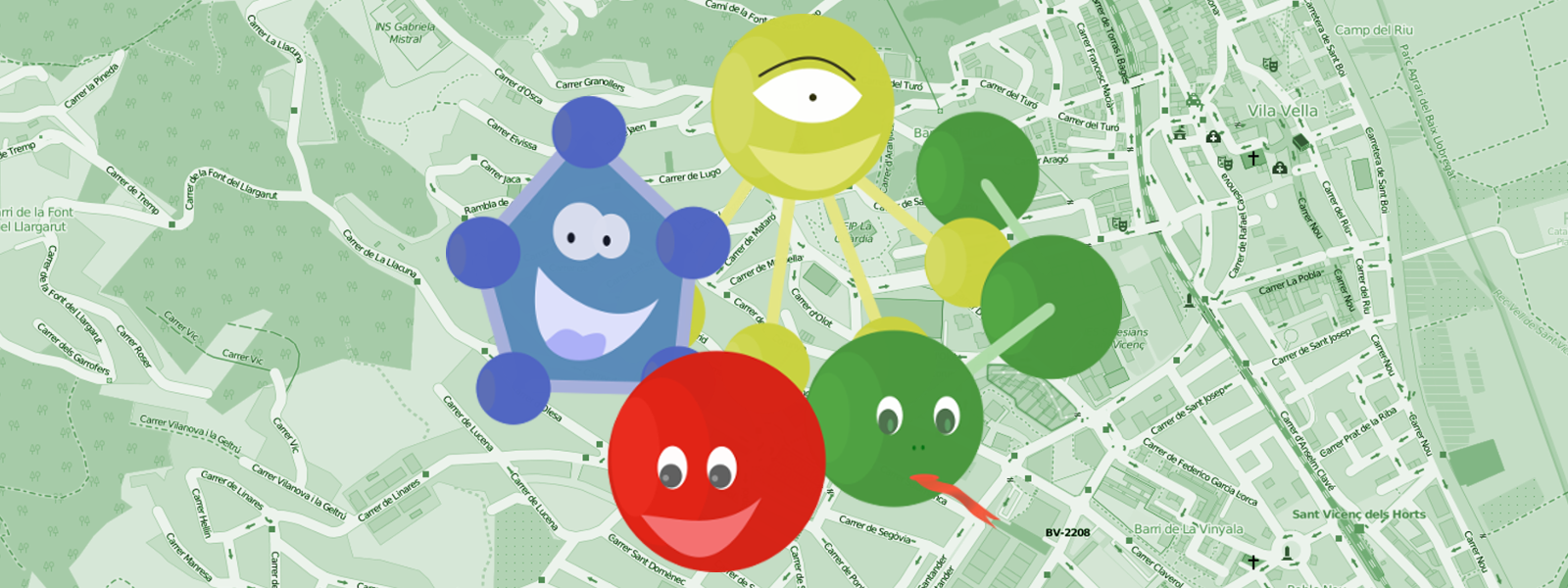 "EDIFY the map" is an opportunity to encourage players to build their city in the website and collaborate with an open data project. In the game, the player must take into account the points (nodes) that he needs to perform different actions on each turn. He must be aware of the possible opponents strategies. They can destroy your buildings, impede your footsteps and make it very difficult for you to win. The players can change the board by adding tiles and flipping them to prevent new constructions. The highways are an important resource because all the new constructions have to be connected to your town hall. The "tag" cards give players the power to destroy, build, spy and make your goal easier.
