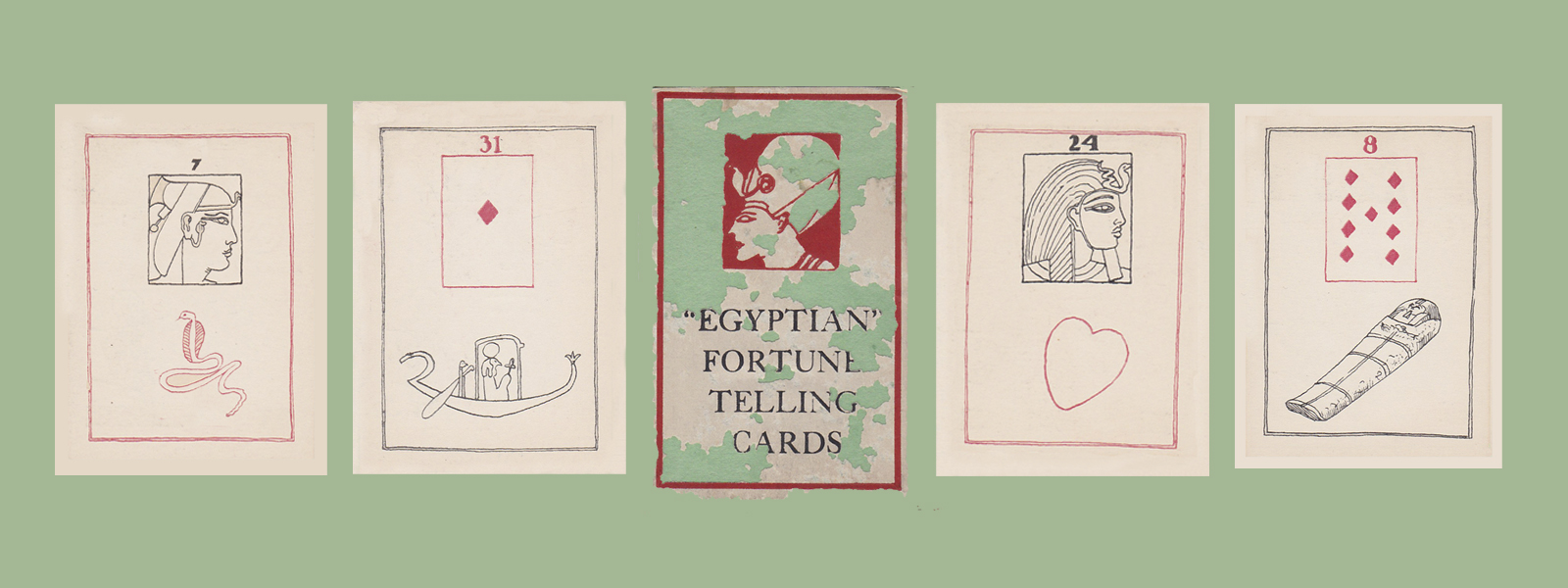 a stark, hand-drawn deck from the 1940s, with Egyptian themes