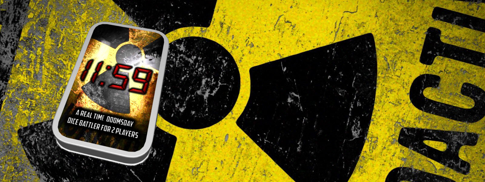 11:59 is a 2-Player micro dice game that requires lightning-quick decisions, dexterity and stamina. As a decorated General on the verge of war your mission is to either succeed through diplomacy or destroy your enemy’s bunker and VIPs before your enemy beats you to it. Each General controls two dice and a missile silo full of nuclear warheads while hidden in a bunker. Launch nukes, employ propaganda and fortify your bunker to become victorious. Do you have what it takes to win?