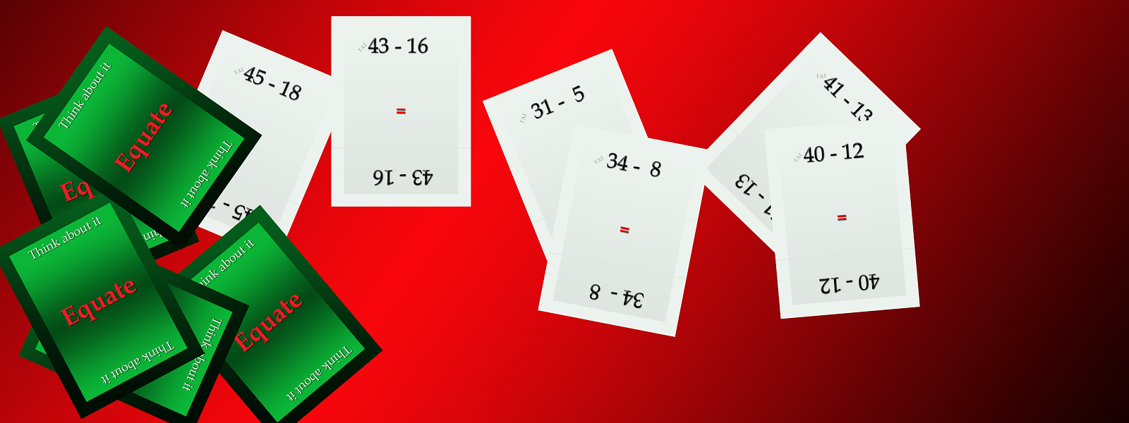 I made this game because my son did not enjoy memorizing his addition and subtraction facts for school. The arithmetic on these cards is more difficult to do, but he enjoys the challenge. When he's not doing the mental math, he uses his "math notebook" to write down the problems.