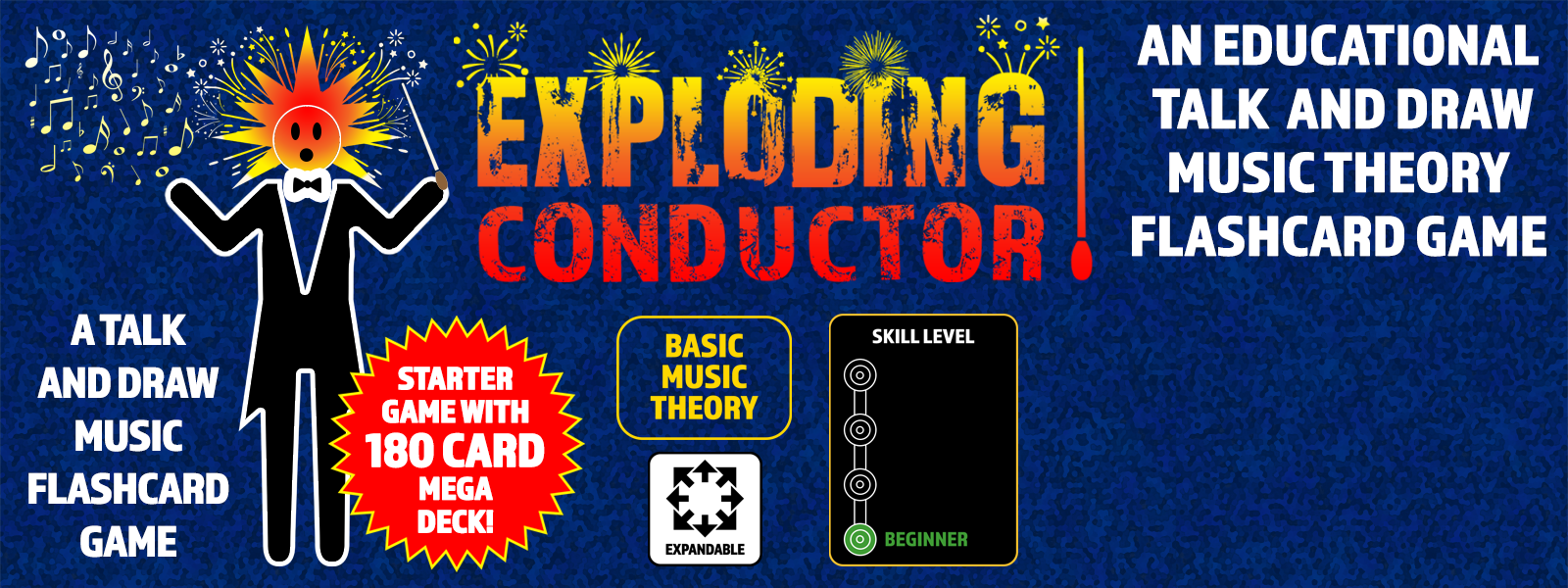 You are currently viewing the Exploding Conductor starter game that comes with the BASIC MUSIC THEORY 180 card MEGA DECK. This deck is rated as BEGINNER SKILL LEVEL and covers the following basic music theory topics: