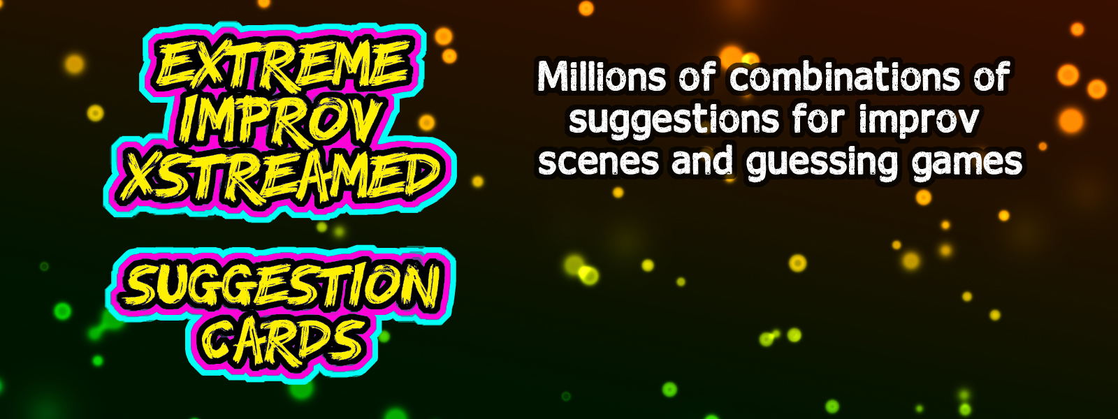 With the Extreme Improv XStreamed Suggestion Cards, you get 52 cards with 884 suggestions which can be used to inspire improv scenes and guessing games.