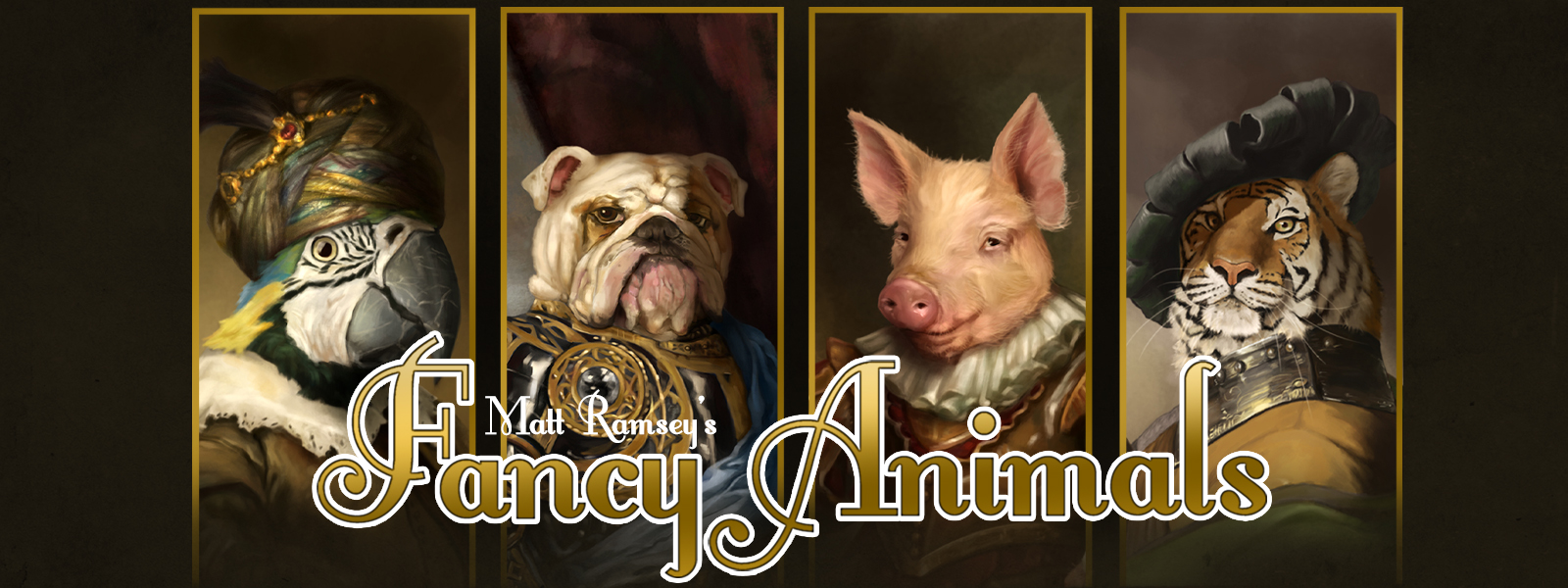 Fancy Animals is a rummy-type card game where players choose one of four fancy animal portrait boards and use the material cards to make runs in order to acquire fancy clothing items.