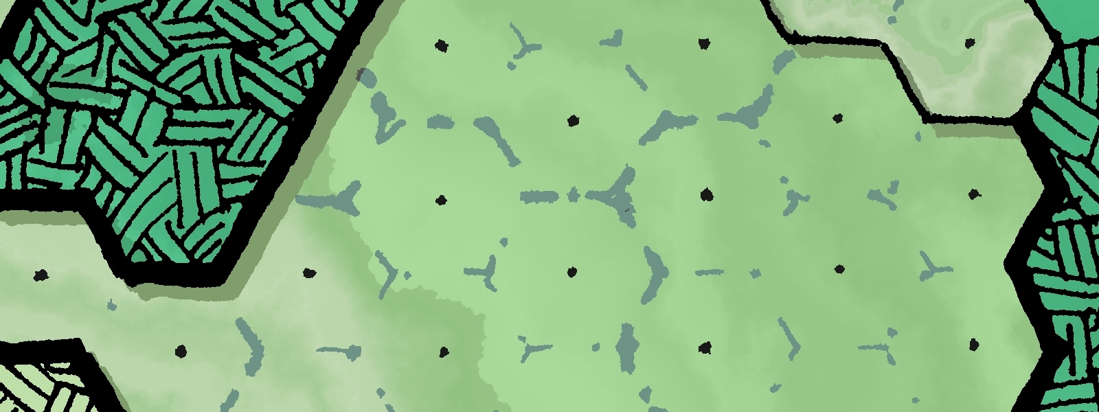 Fantasy Tactical Arena A4 Is a beautiful map hand-drawn by its designer; it features 1.125 inch hexes to accommodate more hexes per board, perfect for use with 3/4 inch counters or 15 to 18mm scale miniatures. It is designed to resemble a platform that, at the GM's discretion, could be airborne, or delicately balanced at its central point; in the latter situation, players must maintain the platform's center of gravity or risk everyone plunging to their doom.
