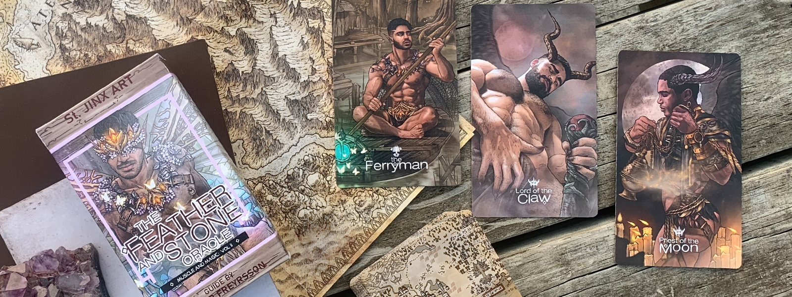 The Feather and Stone Oracle is a venture into fantasy realms where you will be faced with a variety of forces and archetypes present in the stories of old. Each encounter has a fable to tell, a lesson to teach, something new to show, or remind of things long forgotten. Who will you encounter along your journey? Will it be the playful and optimistic Fae? The brutish yet enticing Fallen? Here we open the portal to the realm of the Sunlit Grove, world of the Fae and the realm of the Shadowlands, dominion of the Fallen. Go forth and explore!