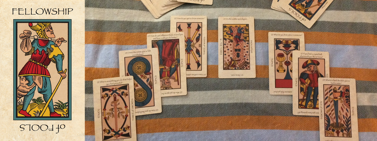 The Tarot card deck has been in use since the 14th century for games and since the 17th century for divination. The art for Fellowship of Fools dates back to 1761 to its creation in France by Nicolas Conver de Marseilles and is called the Tarot de Marseilles. Today, Tarot cards are widely used for game playing, creativity, divination and personal development. Our hope is that FoF can turn that inward reflection of the Tarot outward to help players develop relationships with other players.