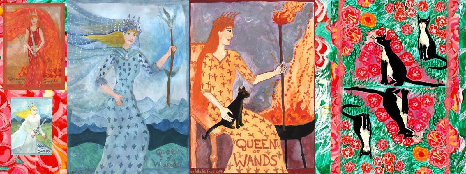 These variations are inspired by the old medieval deck, the Tarot of Besançon, which has "Juno" and "Jupiter" as the second and fifth cards. I chose that deck as a model because Besançon is a special place for me - it was the destination of my very first ever journey to a foreign country at the age of 17 - and it seemed as if it was meant to be.