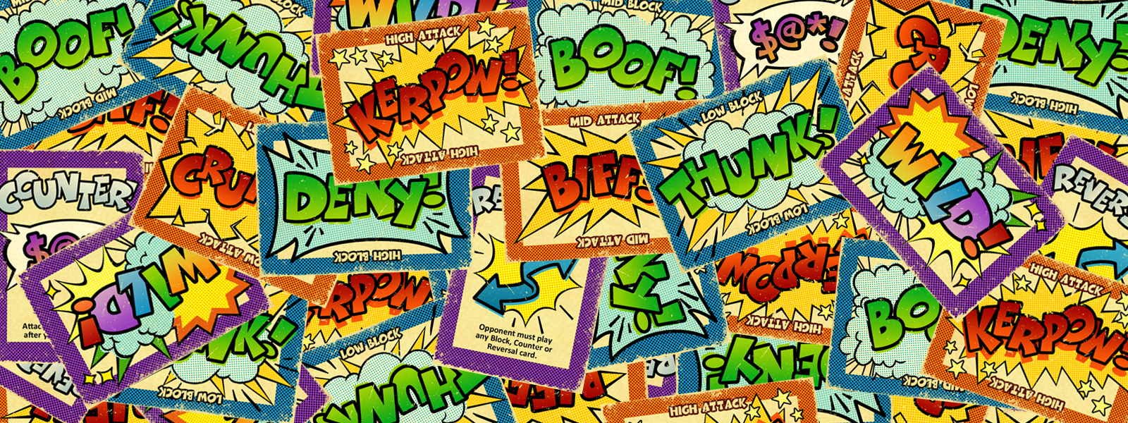 Fight KERPOW! is a matching card game where players alternate between being the attacker and being the blocker. Reverse, Counter and Wild cards can switch up the roles keeping each player on their toes. ----- From the designer: "With Fight KERPOW! my goal was to create a game that kids could pull out of their backpacks and play a game or two during their lunch period." ----- Free print-and-play PDF available. ----- FAQ Q. Does an Attack card need to match the Block card on the top of the stack? A. No. Only Block cards must match an Attack card that's on the top of the stack.