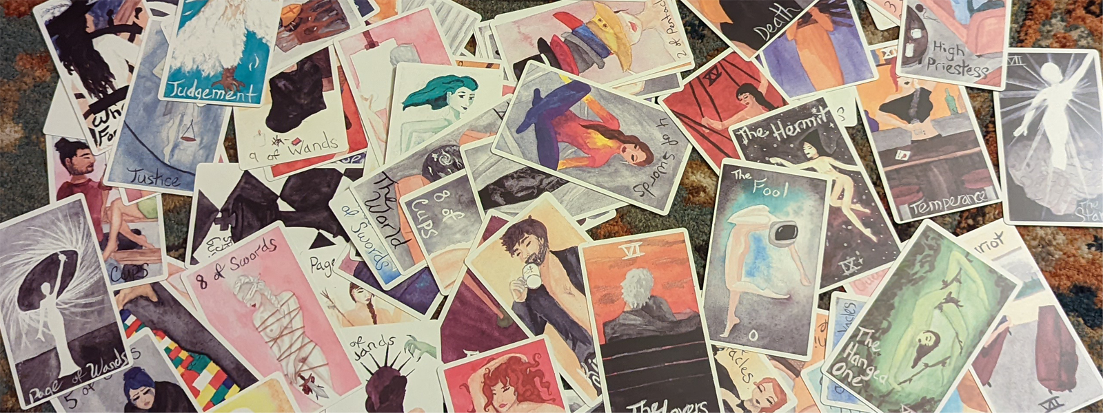 A watercolor tarot deck of exploration, introspection, and emotional processing.