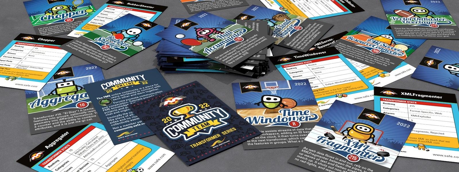 Of course you do! So why not boost your knowledge and enjoyment of FME by collecting these FME transformer trading cards? You might pick up some cards at Safe Software events, or as an FME Community reward, but you can also purchase them online here.