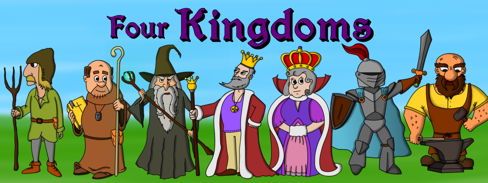 Clash with your friends to become the ruler of the kingdom. This trick-taking game will keep you and your partner on your toes. Test your wits and play your best hand to assure yourselves the victory. Minutes to learn and a lifetime master, Four Kingdoms is fun for all.
