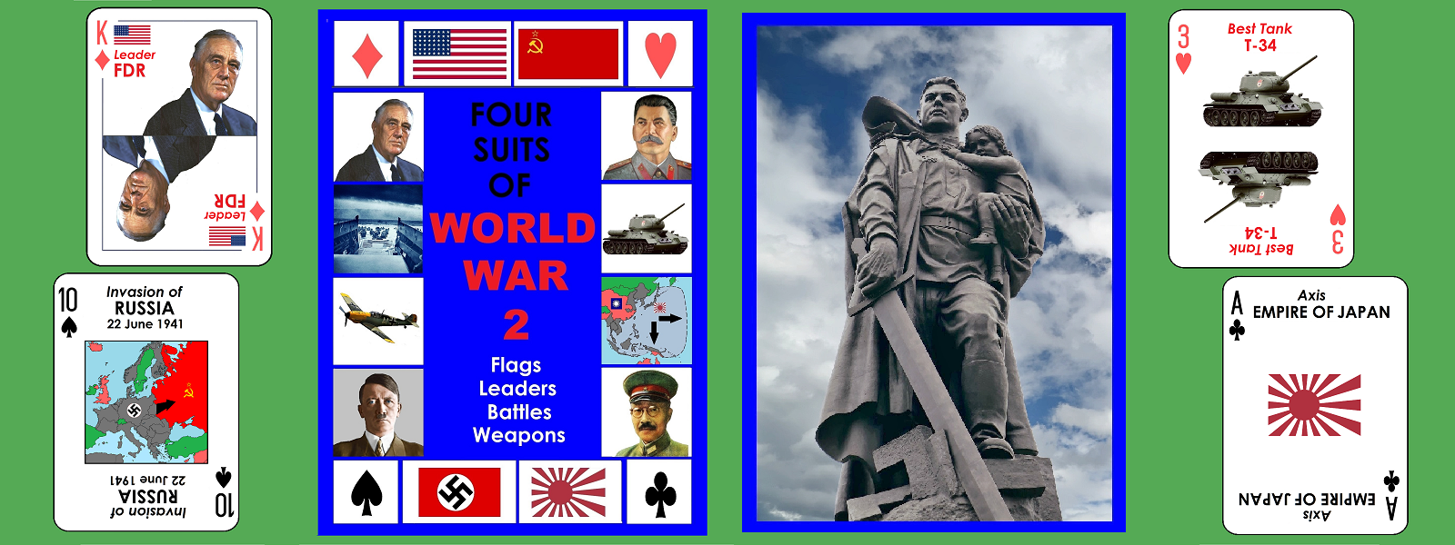Poker card deck that tells history of World War II in visual and concise way.