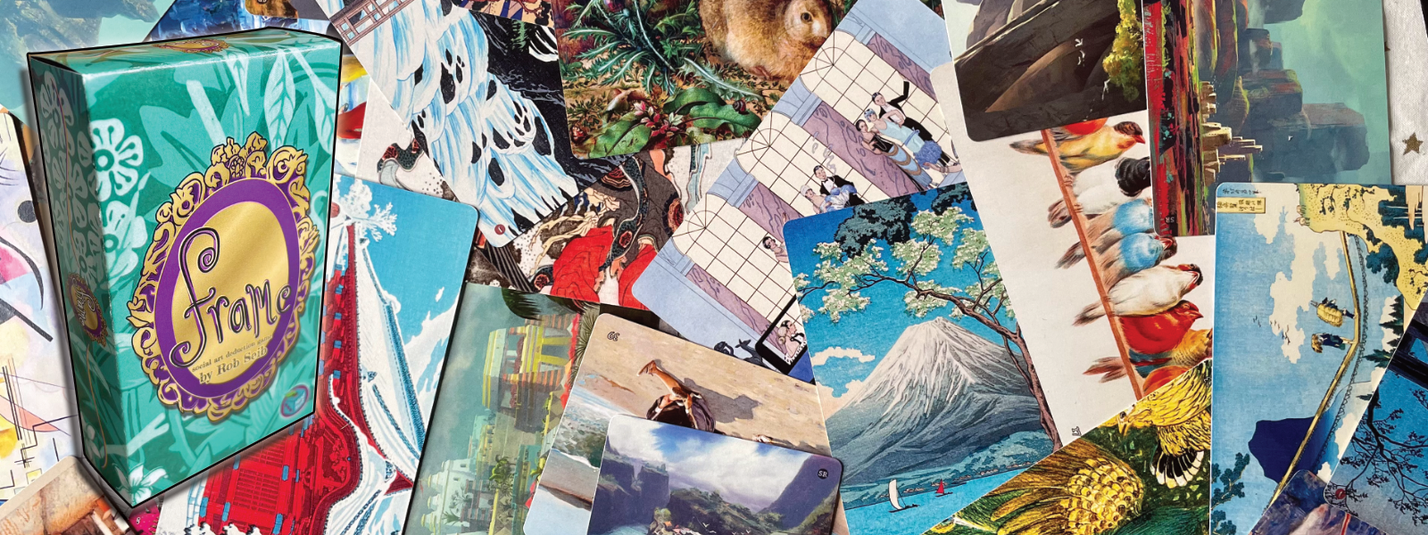 Frame is a social art deduction game for 3 to 7 players about trust deception. Your goal is to reveal player identities as art owners or the Fraud. Players provide clues and then take guesses, trying to score points by guessing correctly.
