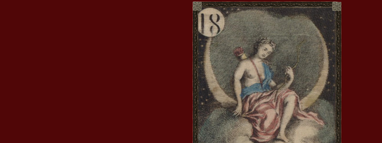 This beautiful deck was created and published in the year 1660 by Francois de Poilly or someone in his family. The deck is not traditional tarot, but it does contain 22 trumps, about 3/4ths of which follow the traditional Tarot structure. The differences are similar to the 97-card Minchiate decks of Italy. Card #16 is missing from the original, and has been recreated; I've also recreated the minor pip cards to create a full reading deck. There is also a Majors and Courts edition available here, without the recreated pips.