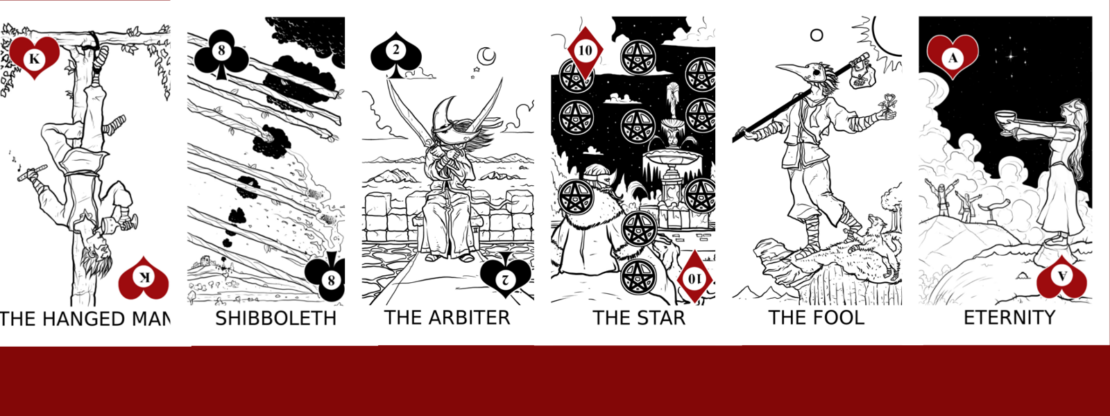 Note that all of the major arcana are represented in some capacity, whether blended with the minor arcana, or combined to form all new named cards. Each card has symbolic significance, perfect for either cartomancy or just playing cards with your buds.