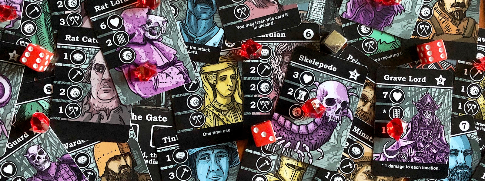 Gate is a solo play only tower-defense game in which you take on the role of the leader of a small medieval town that is under siege from a swarm of vile creatures from the local forest. You will have to manage the health of your town's gate, the tower, and the local farm. In addition this attack is causing fear levels to rise. If you cannot keep your gate standing or if your people's fear gets too high, you will lose the game.