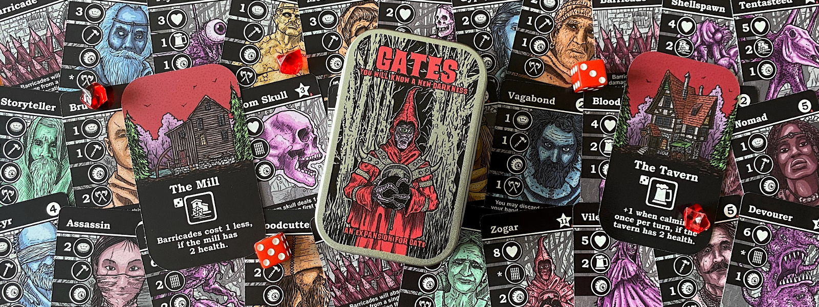 Gate is a solo play only tower-defense game in which you take on the role of the leader of a small medieval town that is under siege from a swarm of vile creatures from the local forest. You will have to manage the health of your town's gate, the tower, and the local farm. In addition this attack is causing fear levels to rise. If you cannot keep your gate standing or if your people's fear gets too high, you will lose the game.