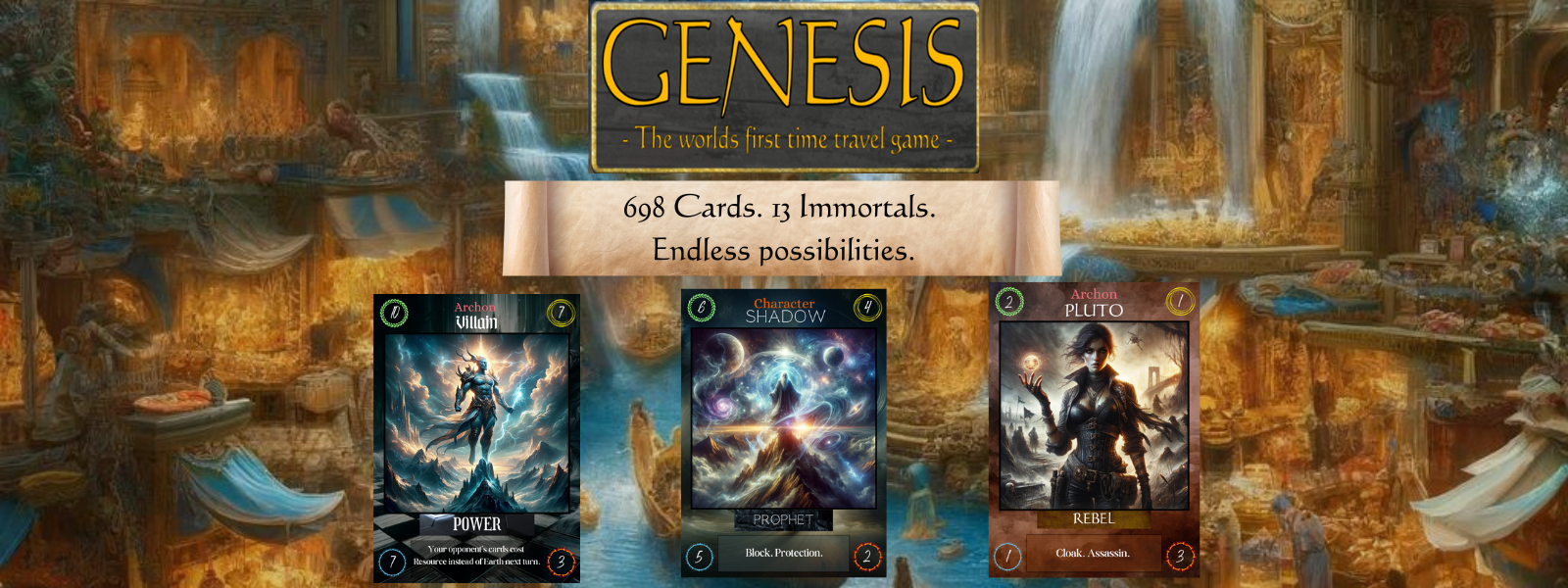 Genesis: The World’s First Time Travel Game is a grand duel of strategy and wit, where two noble players each command an immortal champion, starting with 33 precious resources.