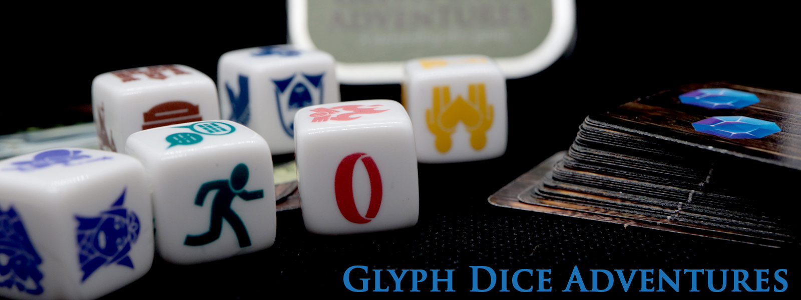 Glyph Dice Adventures is a multi-genre storytelling game. Players take turns rolling the dice and making up entertaining stories using the glyphs shown — the other player’s award gems based many they think the story deserves.