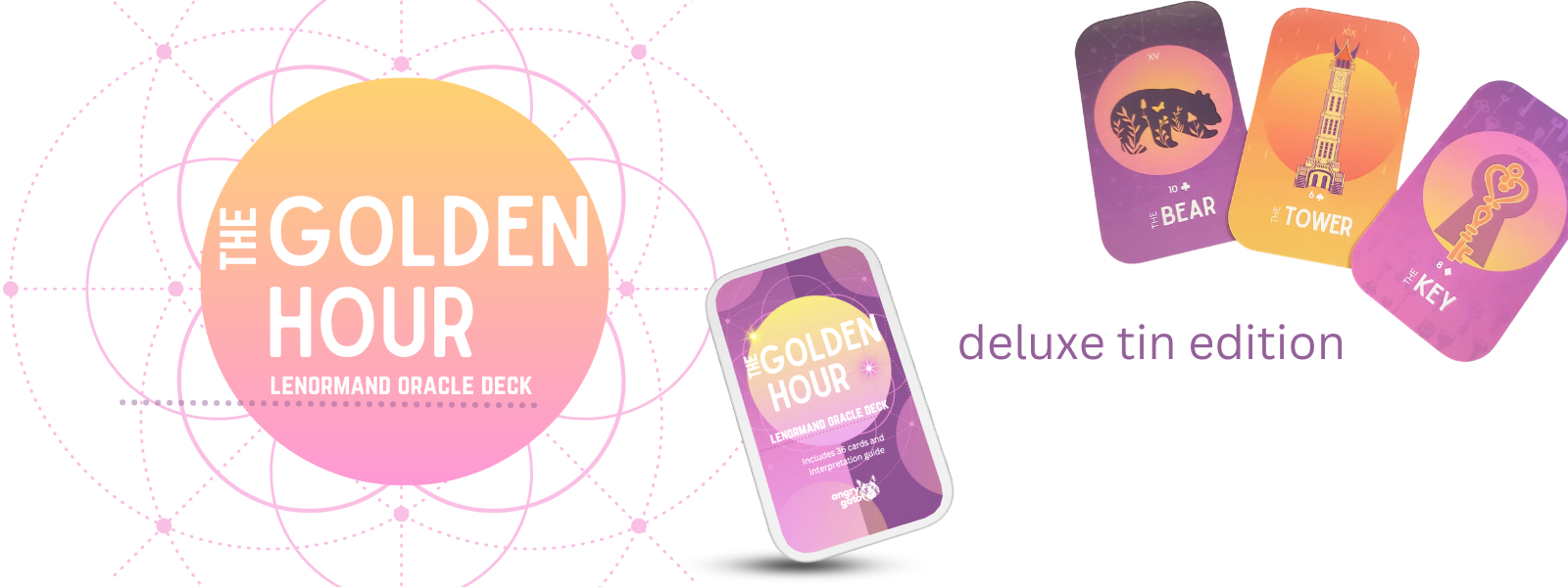 This listing is for the Golden Hour Lenormand Oracle - Deluxe Tin Edition.