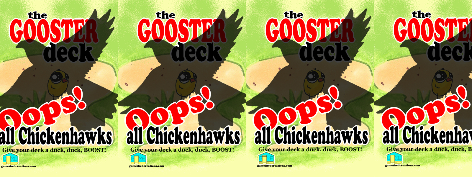 Have you ever wanted to feel like your game hates you? Well, here are fifteen more Chickenhawks to add to your Duck,Duck,GOOSE! deck for an added level of terror and rage that, until now, has only been dreamed of.